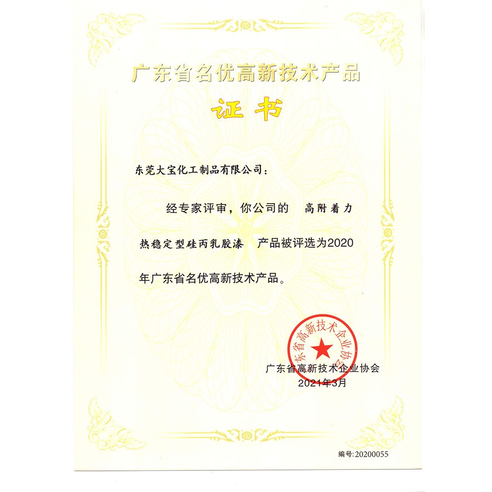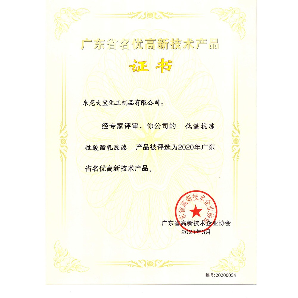 廣東省名優(yōu)高新技術(shù)產(chǎn)品證書(乳膠漆)