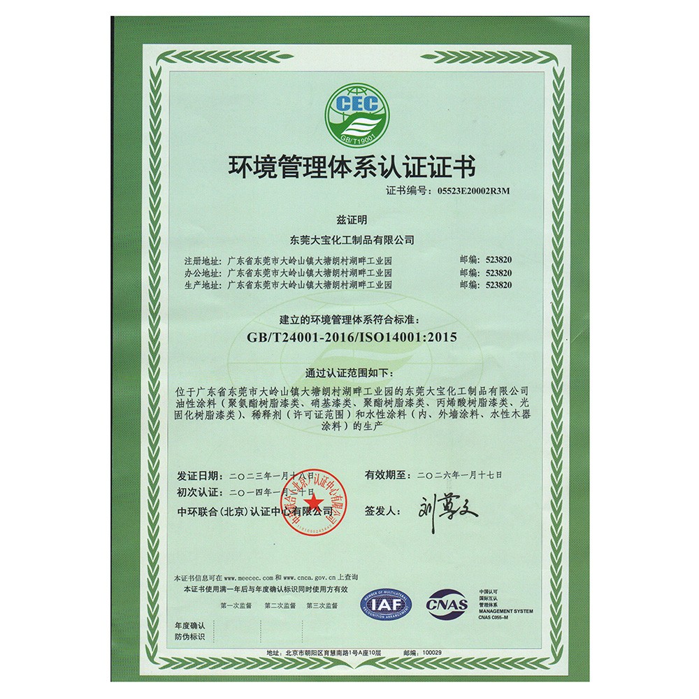 環(huán)境管理體系認證(東莞大寶)
