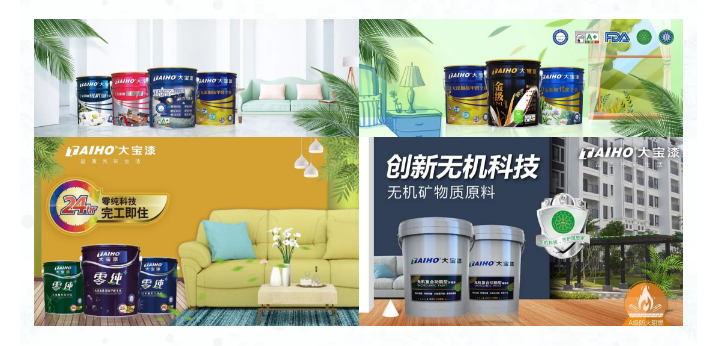 通過多年對消費者市場需求和喜好進(jìn)行統(tǒng)計和分析,對調(diào)色技術(shù)的精準(zhǔn)把握,大寶漆推出在線配色程序,可以為消費者提供色彩搭配、產(chǎn)品選擇及最終裝修效果的便捷式體驗服務(wù),同時也為大寶漆各終端門店、經(jīng)銷商提供強大的銷售保障。