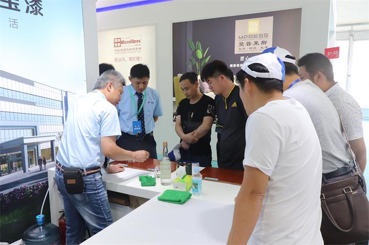 在眾多的展位中,大寶漆簡(jiǎn)約大氣的展臺(tái)和高端時(shí)尚的色板十分引人矚目,吸引了眾多參展客戶參觀了解。