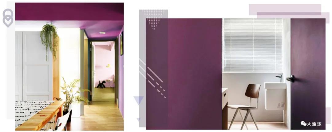 在空間中,大面積使用黑加侖紫其實不大好把控,需要把握好搭配色調和整體比例。黑加侖紫也可以與灰、木色等搭配,增強空間明亮感,提升家居的活力。